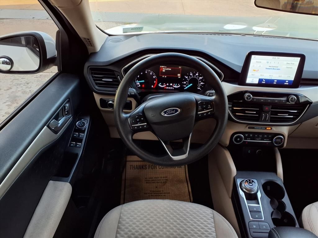This 2020 Ford Escape SE in Oxford White comes with the following features: 1.5L EcoBoost 8-Speed Automatic FWD Equipment Group 200A, 3.52 Axle Ratio, 4-Wheel Disc Brakes, 6 Speakers, ABS brakes, Air Conditioning, Alloy wheels, AM/FM radio: SiriusXM, AM/FM Stereo, Auto High-beam Headlights, Automatic temperature control, Brake assist, Bumpers: body-color, Compass, Delay-off headlights, Driver door bin, Driver vanity mirror, Dual front impact airbags, Dual front side impact airbags, Electronic Stability Control, Emergency communication system: SYNC 3 911 Assist, Exterior Parking Camera Rear, FordPass Connect, Four wheel independent suspension, Front anti-roll bar, Front Bucket Seats, Front Center Armrest, Front reading lights, Fully automatic headlights, Heated door mirrors, Heated front seats, Heated Unique Cloth Front Bucket Seats, Illuminated entry, Knee airbag, Low tire pressure warning, Occupant sensing airbag, Outside temperature display, Overhead airbag, Overhead console, Panic alarm, Passenger door bin, Passenger vanity mirror, Power door mirrors, Power driver seat, Power steering, Power windows, Radio data system, Rear anti-roll bar, Rear reading lights, Rear seat center armrest, Rear window defroster, Rear window wiper, Remote keyless entry, Speed control, Speed-sensing steering, Speed-Sensitive Wipers, Split folding rear seat, Spoiler, Steering wheel mounted audio controls, SYNC 3 Communications & Entertainment System, Tachometer, Telescoping steering wheel, Tilt steering wheel, Traction control, Trip computer, Variably intermittent wipers, and Wheels: 17" Shadow Silver-Painted Aluminum. Oxford White 2020 Ford Escape SE FWD 8-Speed Automatic 1.5L EcoBoost