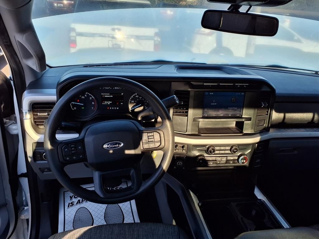 This 2023 Ford F-250SD XLT in Oxford White comes with the following features: 7.3L V8 PFI OHV 16V Federal 430hp 10-Speed Automatic 4WD 4WD 360-Degree Camera Package (BLIS w/Cross-Traffic Alert, LED Center High-Mounted Stop Lamp (CHMSL) Camera, and Rear Parking Sensors), 5th Wheel/Gooseneck Hitch Prep Package, GVWR: 10,000 lb Payload Package, Order Code 603A, 4WD, 250 Amp Alternator (Gas), 4-Wheel Disc Brakes, 7 Speakers, ABS brakes, Air Conditioning, Alloy wheels, AM/FM radio, Auto High-beam Headlights, Auto-dimming Rear-View mirror, Brake assist, Bumpers: chrome, Cloth 40/20/40 Split Bench Seat, Compass, Delay-off headlights, Driver door bin, Driver vanity mirror, Dual front impact airbags, Dual front side impact airbags, Electronic Stability Control, Emergency communication system: SYNC 4 911 Assist, Exterior Parking Camera Rear, Fixed Rear-Window w/Defrost, Front anti-roll bar, Front Center Armrest w/Storage, Front fog lights, Front reading lights, Fully automatic headlights, Gooseneck Hitch Kit (Pre-Installed), Heated door mirrors, Illuminated entry, Low tire pressure warning, Outside temperature display, Overhead airbag, Overhead console, Panic alarm, Passenger door bin, Passenger vanity mirror, Power door mirrors, Power driver seat, Power steering, Power windows, PowerScope Trailer Tow Mirrors w/Heat, Privacy Glass, Radio: AM/FM Stereo/MP3 Player, Rear reading lights, Rear step bumper, Remote keyless entry, Speed control, Split folding rear seat, Steering wheel mounted audio controls, SYNC 4, Tachometer, Telescoping steering wheel, Tilt steering wheel, Traction control, Trip computer, Turn signal indicator mirrors, Upfitter Switches (6), Variably intermittent wipers, and Wheels: 18" Sparkle Silver Painted Cast Aluminum. Oxford White 2023 Ford F-250SD XLT 4WD 10-Speed Automatic 7.3L V8 PFI OHV 16V Federal 430hp 4WD.
