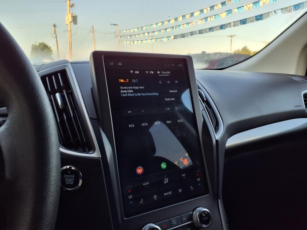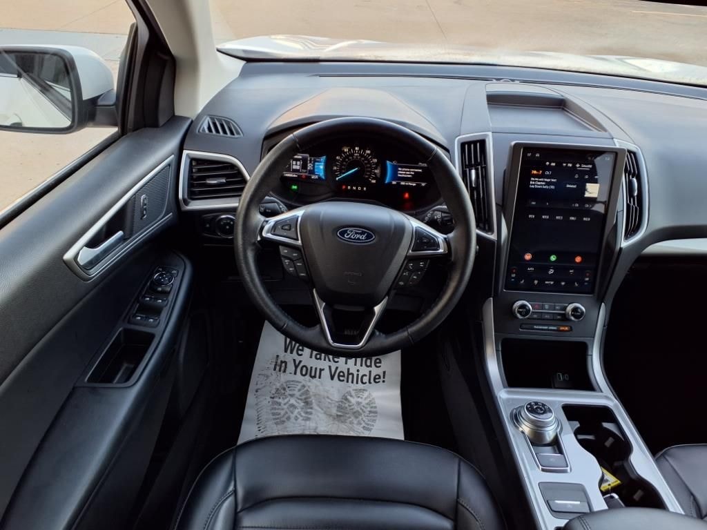 This 2024 Ford Edge SEL in Oxford White comes with the following features: EcoBoost 2.0L I4 GTDi DOHC Turbocharged VCT 8-Speed Automatic AWD AWD AWD, 3.80 Axle Ratio, 4-Wheel Disc Brakes, 6 Speakers, ABS brakes, ActiveX Trimmed Heated Bucket Seats, Air Conditioning, Alloy wheels, AM/FM radio: SiriusXM with 360L, AM/FM Stereo, Auto High-beam Headlights, Auto-dimming Rear-View mirror, Automatic temperature control, Brake assist, Bumpers: body-color, Compass, Delay-off headlights, Driver door bin, Driver vanity mirror, Dual front impact airbags, Dual front side impact airbags, Electronic Stability Control, Emergency communication system: SYNC 4 911 Assist, FordPass Connect, Four wheel independent suspension, Front anti-roll bar, Front Bucket Seats, Front Center Armrest w/Storage, Front dual zone A/C, Front reading lights, Fully automatic headlights, Heated door mirrors, Heated front seats, Illuminated entry, Knee airbag, Leather steering wheel, Low tire pressure warning, Occupant sensing airbag, Outside temperature display, Overhead airbag, Overhead console, Panic alarm, Passenger door bin, Passenger vanity mirror, Power door mirrors, Power driver seat, Power Liftgate, Power passenger seat, Power steering, Power windows, Rear anti-roll bar, Rear Parking Sensors, Rear reading lights, Rear seat center armrest, Rear window defroster, Rear window wiper, Remote keyless entry, SiriusXM w/360L, Speed control, Speed-Sensitive Wipers, Split folding rear seat, Spoiler, Steering wheel mounted audio controls, SYNC 4A w/Enhanced Voice Recognition, Tachometer, Telescoping steering wheel, Tilt steering wheel, Traction control, Trip computer, and Variably intermittent wipers. Oxford White 2024 Ford Edge SEL AWD 8-Speed Automatic EcoBoost 2.0L I4 GTDi DOHC Turbocharged VCT AWD.