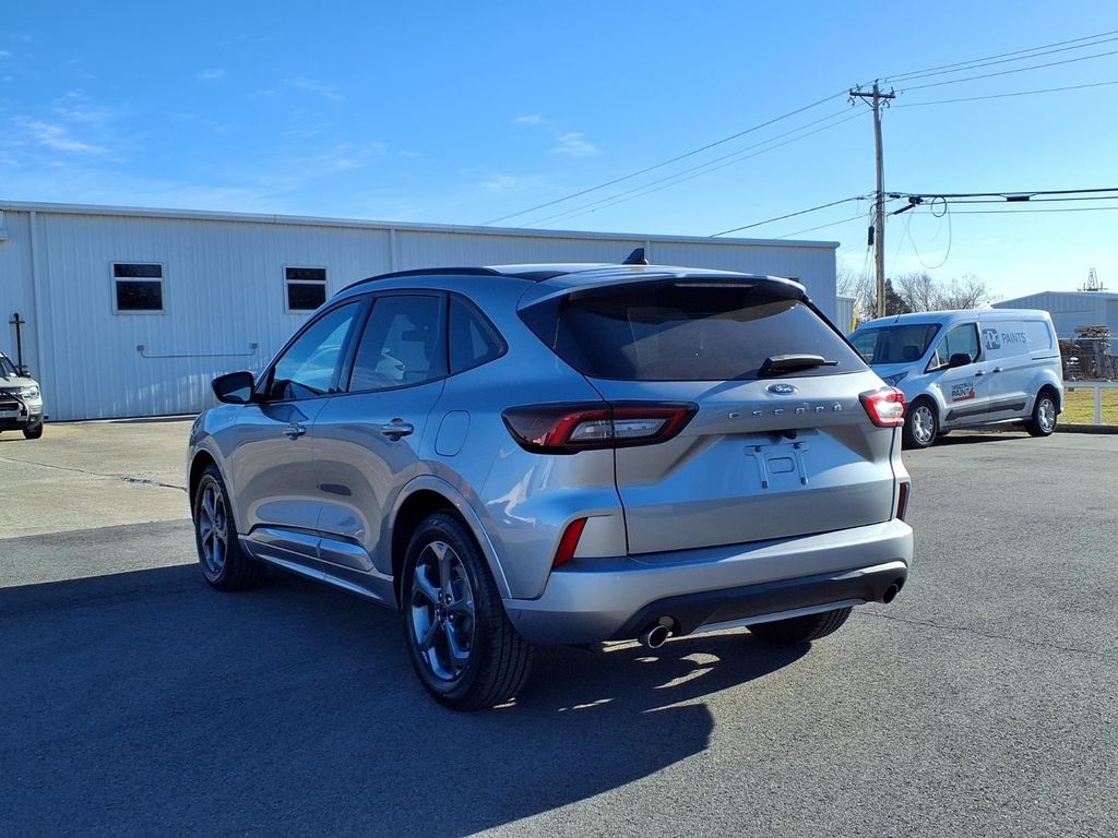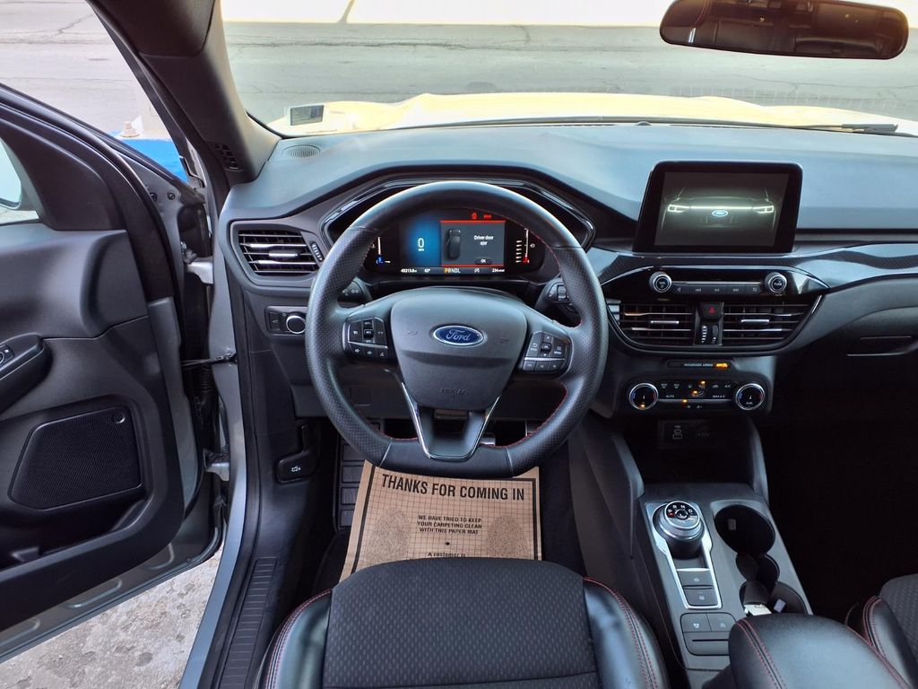 This 2024 Ford Escape ST-Line in Silver Metallic comes with the following features: 1.5L EcoBoost 8-Speed Automatic FWD Equipment Group 300A, 3.81 Axle Ratio, 4-Wheel Disc Brakes, 6 Speakers, ABS brakes, Air Conditioning, Alloy wheels, AM/FM radio: SiriusXM, AM/FM Stereo, Auto High-beam Headlights, Automatic temperature control, Brake assist, Bumpers: body-color, Compass, Delay-off headlights, Driver door bin, Driver vanity mirror, Dual front impact airbags, Dual front side impact airbags, Electronic Stability Control, Emergency communication system: SYNC 4 911 Assist, Exterior Parking Camera Rear, FordPass Connect, Four wheel independent suspension, Front & Rear Floor Liners w/Carpet Mats, Front anti-roll bar, Front Bucket Seats, Front Center Armrest, Front dual zone A/C, Front License Plate Bracket, Front reading lights, Fully automatic headlights, Illuminated entry, Knee airbag, Low tire pressure warning, Occupant sensing airbag, Outside temperature display, Overhead airbag, Overhead console, Panic alarm, Passenger door bin, Passenger vanity mirror, Power door mirrors, Power driver seat, Power Liftgate, Power steering, Power windows, Radio data system, Rear anti-roll bar, Rear reading lights, Rear seat center armrest, Rear window defroster, Rear window wiper, Remote keyless entry, Roof rack: rails only, Speed control, Speed-sensing steering, Speed-Sensitive Wipers, Split folding rear seat, Spoiler, Sport steering wheel, Steering wheel mounted audio controls, SYNC 4, Tachometer, Telescoping steering wheel, Tilt steering wheel, Traction control, Trip computer, Variably intermittent wipers, Vinyl/Cloth Front Sport Contour Bucket Seats, and Wheels: 18" Rock Metallic Painted Aluminum. Silver Metallic 2024 Ford Escape ST-Line FWD 8-Speed Automatic 1.5L EcoBoost