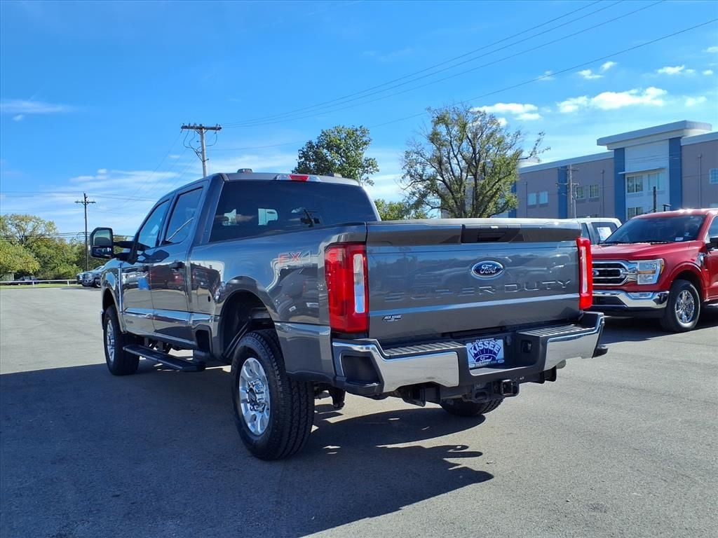 This 2024 Ford F-250SD XLT in Gray comes with the following features: Power Stroke 6.7L V8 DI 32V OHV Turbodiesel 10-Speed Automatic 4WD 4WD GVWR: 10,000 lb Payload Package, 4WD, 3.73 Axle Ratio, 4-Wheel Disc Brakes, 6 Speakers, ABS brakes, Air Conditioning, Alloy wheels, AM/FM radio, AM/FM Stereo w/MP3 Player, Auto High-beam Headlights, Brake assist, Bumpers: chrome, Cloth 40/20/40 Split Bench Seat, Compass, Delay-off headlights, Driver door bin, Driver vanity mirror, Dual front impact airbags, Dual front side impact airbags, Electronic Stability Control, Emergency communication system: SYNC 4 911 Assist, Exterior Parking Camera Rear, Front anti-roll bar, Front Center Armrest w/Storage, Front fog lights, Front reading lights, Fully automatic headlights, Heated door mirrors, Illuminated entry, Low tire pressure warning, Outside temperature display, Overhead airbag, Overhead console, Panic alarm, Passenger door bin, Passenger vanity mirror, Power door mirrors, Power driver seat, Power steering, Power windows, Privacy Glass, Rear reading lights, Rear step bumper, Remote keyless entry, Speed control, Split folding rear seat, Steering wheel mounted audio controls, SYNC 4, Tachometer, Telescoping steering wheel, Tilt steering wheel, Traction control, Trip computer, Turn signal indicator mirrors, Variably intermittent wipers, and Wheels: 18" Sparkle Silver Painted Cast Aluminum. Gray 2024 Ford F-250SD XLT 4WD 10-Speed Automatic Power Stroke 6.7L V8 DI 32V OHV Turbodiesel 4WD.