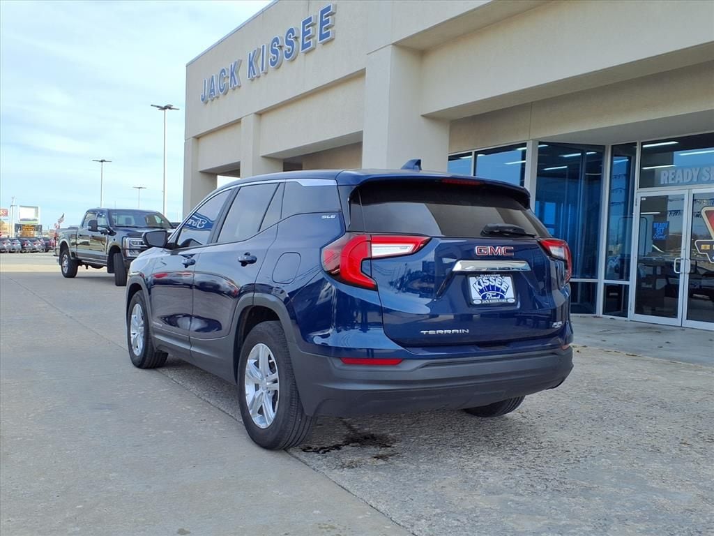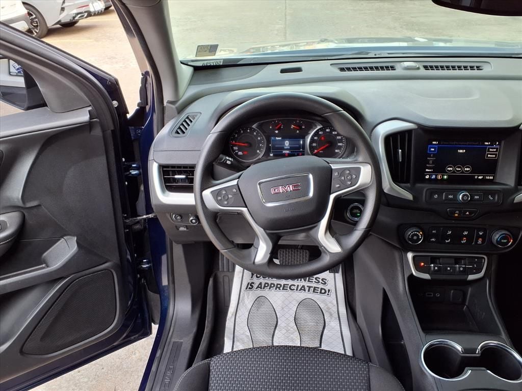 This 2022 GMC Terrain SLE in Marine Metallic comes with the following features: 1.5L DOHC 9-Speed Automatic FWD Preferred Equipment Group 3SA, 2 USB Data Ports w/Auxiliary Input Jack, 3 Years of OnStar & Connected Services Plan, 3.47 Axle Ratio, 4-Way Manual Driver's Seat, 4-Way Manual Front Passenger Seat, 4-Wheel Disc Brakes, 4.2" Multi-Color Driver Information Screen, 6 Speakers, 6-Speaker Audio System Feature, ABS brakes, Air Conditioning, Alloy wheels, AM/FM radio: SiriusXM, Auto High-beam Headlights, Auto-dimming Rear-View mirror, Automatic temperature control, Bluetooth® For Phone, Brake assist, Bumpers: body-color, Compass, Delay-off headlights, Driver door bin, Driver vanity mirror, Dual front impact airbags, Dual front side impact airbags, Electronic Stability Control, Emergency communication system: OnStar Guidance, Four wheel independent suspension, Front anti-roll bar, Front Bucket Seats, Front Center Armrest, Front reading lights, Fully automatic headlights, Heated door mirrors, Illuminated entry, Low tire pressure warning, Occupant sensing airbag, Outside temperature display, Overhead airbag, Overhead console, Panic alarm, Passenger door bin, Passenger vanity mirror, Power door mirrors, Power steering, Power windows, Premium Cloth Seat Trim, Radio data system, Radio: GMC Infotainment Audio System w/7" Display, Rear anti-roll bar, Rear seat center armrest, Rear window defroster, Rear window wiper, Remote keyless entry, Security system, SiriusXM Radio, Speed control, Speed-sensing steering, Split folding rear seat, Spoiler, Steering wheel mounted audio controls, Tachometer, Telescoping steering wheel, Tilt steering wheel, Traction control, Trip computer, Variably intermittent wipers, Wheels: 17" x 7" Silver Painted Aluminum, and Wireless Apple CarPlay/Wireless Android Auto. Marine Metallic 2022 GMC Terrain SLE FWD 9-Speed Automatic 1.5L DOHC
