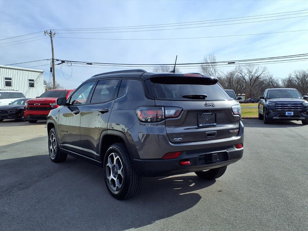 This 2022 Jeep Compass Trailhawk in Granite Crystal Metallic Clearcoat comes with the following features: 2.4L I4 9-Speed 948TE Automatic 4WD 4WD Driver Assist Group I (360 Surround View Camera System, Highway Assist System, P&P Park & Unpark Assist System, ParkSense Fr/Rr Park Assist System, Traffic Sign Recognition, Universal Garage Door Opener, and Wireless Charging Pad), Quick Order Package 2GE, Trailer Tow Group (4 Pin Wiring Harness and Class III Receiver Hitch), Trailhawk Elite Group (10.1" Touchscreen Display, 115V Auxiliary Power Outlet, 2nd Row Heated Seats, 2nd Row USB Type A/C Charge Only, 4G LTE Wi-Fi Hot Spot, Alexa Built-In, Cluster 10.25" TFT Color Display, Connected Travel & Traffic Services, Disassociated Touchscreen Display, Driver Seat Memory, Foot Activated Open 'N Go Liftgate, For Details, Visit DriveUconnect.com, For More Info, Call 800-643-2112, Global Telematics Box Module (TBM), GPS Navigation, HD Radio, Heated Front Seats, Integrated Voice Command w/Bluetooth, Leather Wrapped Steering Wheel, LED Low/Highbeam Projector Headlamps, No Satellite Coverage HI/AK/PR/VI/GU, Power 8-Way Adjust Front Passenger Seat, Power Adjust 8-Way Driver Seat, Power Liftgate, Premium Leather Trimmed Bucket Seats, Premium LED Fog Lamps, Premium Taillamps, Radio: Uconnect 5 Nav w/10.1" Display, Remote Start System, Reversible Carpet/Vinyl Cargo Mat, SiriusXM Guardian - Included Trial (B), SiriusXM Radio Service, SiriusXM Satellite Radio, SiriusXM w/360L, Vehicle Information Center, Ventilated Front Seats, and Windshield Wiper De-Icer), 4WD, 4-Wheel Disc Brakes, 4.334 Axle Ratio, 6 Speakers, ABS brakes, Air Conditioning, Alloy wheels, AM/FM radio: SiriusXM, Anti-whiplash front head restraints, Auto High-beam Headlights, Auto-dimming Rear-View mirror, Automatic temperature control, Brake assist, Bumpers: body-color, Compass, Delay-off headlights, Driver door bin, Driver vanity mirror, Dual front impact airbags, Dual front side impact airbags, Electronic Stability Control, Emergency communication system: SiriusXM Guardian, Four wheel independent suspension, Front anti-roll bar, Front Bucket Seats, Front Center Armrest w/Storage, Front dual zone A/C, Front fog lights, Front reading lights, Fully automatic headlights, Heated door mirrors, Illuminated entry, Knee airbag, Leather Shift Knob, Low tire pressure warning, Occupant sensing airbag, Outside temperature display, Overhead airbag, Overhead console, Panic alarm, ParkView Rear Back-Up Camera, Passenger door bin, Passenger vanity mirror, Power door mirrors, Power steering, Power windows, Premium Cloth/Leather Trim Bucket Seats, Radio: Uconnect 5 w/10.1" Display, Rain sensing wipers, Rear anti-roll bar, Rear seat center armrest, Rear window defroster, Rear window wiper, Remote keyless entry, Roof rack: rails only, Security system, Speed control, Split folding rear seat, Spoiler, Steering wheel mounted audio controls, Tachometer, Telescoping steering wheel, Tilt steering wheel, Traction control, Trip computer, Turn signal indicator mirrors, Variably intermittent wipers, and Wheels: 17" x 6.5" Painted Diamond Cut AluminuM. Granite Crystal Metallic Clearcoat 2022 Jeep Compass Trailhawk 4WD 9-Speed 948TE Automatic 2.4L I4 4WD.