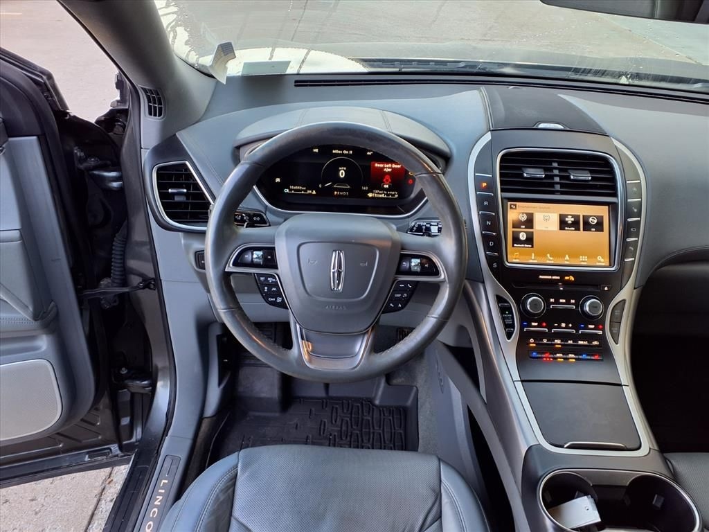 This 2019 Lincoln Nautilus Reserve in comes with the following features: V6 8-Speed Automatic AWD 13 Speakers, 3.80 Axle Ratio, 4-Wheel Disc Brakes, ABS brakes, Adaptive suspension, Air Conditioning, Alloy wheels, AM/FM radio: SiriusXM, AppLink/Apple CarPlay and Android Auto, Auto High-beam Headlights, Auto tilt-away steering wheel, Auto-dimming door mirrors, Auto-dimming Rear-View mirror, Automatic temperature control, Brake assist, Bumpers: body-color, CD player, Compass, Delay-off headlights, Driver door bin, Driver vanity mirror, Dual front impact airbags, Dual front side impact airbags, Electronic Stability Control, Emergency communication system: 911 Assist, Exterior Parking Camera Rear, Four wheel independent suspension, Front anti-roll bar, Front Bucket Seats, Front Center Armrest w/Storage, Front dual zone A/C, Front fog lights, Front reading lights, Fully automatic headlights, Garage door transmitter: HomeLink, Genuine wood console insert, Genuine wood door panel insert, Heated door mirrors, Heated front seats, Heated rear seats, Heated steering wheel, Illuminated entry, Knee airbag, Leather steering wheel, Low tire pressure warning, Memory seat, Navigation System, Occupant sensing airbag, Outside temperature display, Overhead airbag, Overhead console, Panic alarm, Passenger door bin, Passenger vanity mirror, Power door mirrors, Power driver seat, Power Liftgate, Power moonroof: Panoramic Vista Roof, Power passenger seat, Power steering, Power windows, Prem Lthr-Trimmed Heated/Cooled Bucket Seats, Radio data system, Radio: Revel Audio w/Single-CD, HD & Nav, Rain sensing wipers, Rear anti-roll bar, Rear reading lights, Rear seat center armrest, Rear window defroster, Rear window wiper, Remote keyless entry, Security system, Speed control, Speed-sensing steering, Speed-Sensitive Wipers, Split folding rear seat, Spoiler, Steering wheel memory, Steering wheel mounted A/C controls, Steering wheel mounted audio controls, SYNC 3 Communications & Entertainment System, Tachometer, Telescoping steering wheel, Tilt steering wheel, Traction control, Trip computer, Turn signal indicator mirrors, Variably intermittent wipers, Ventilated front seats, Voice-Activated Touchscreen Navigation System, and Wheels: 20" Prem Painted Bright Machined Alum. 2019 Lincoln Nautilus Reserve AWD 8-Speed Automatic V6