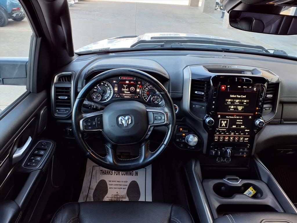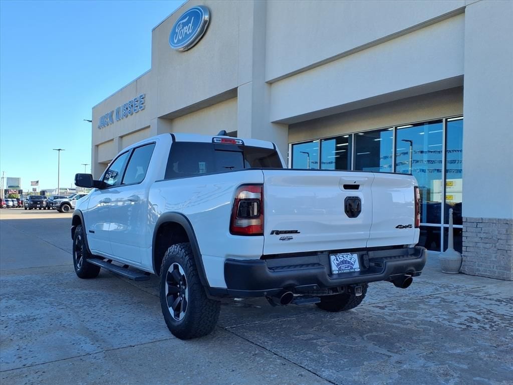This 2021 Ram 1500 Rebel in Bright White Clearcoat comes with the following features: HEMI 5.7L V8 Multi Displacement VVT 8-Speed Automatic 4WD Bed Utility Group (MOPAR 4 Adjustable Cargo Tie-Down Hooks, MOPAR Deployable Bed Step, and Pick-Up Box Lighting), Quick Order Package 27W Rebel, Rebel 12 (1-Yr SiriusXM Guardian Trial, 12" Touchscreen Display, 4 Way Front Headrests, 4G LTE Wi-Fi Hot Spot, 5-Year SiriusXM Traffic Service, 5-Year SiriusXM Travel Link Service, Apple CarPlay, Bucket Seats, Disassociated Touchscreen Display, For Details, Visit DriveUconnect.com, For More Info, Call 800-643-2112, Front Seat Back Map Pockets, Full Length Upgraded Floor Console, Google Android Auto, GPS Antenna Input, GPS Navigation, harman/kardon 19 Speaker Premium Sound, HD Radio, Heated Front Seats, Heated Steering Wheel, Integrated Center Stack Radio, Integrated Voice Command w/Bluetooth, LED Footwell Lighting, Lux Leather Trimmed Bucket Seats, Power 4-Way Driver Lumbar Adjust, Power 4-Way Passenger Lumbar Adjust, Power 8-Way Driver & Passenger Seats, Radio: Uconnect 12 w/Navigation, Rear 60/40 Folding Seat, SiriusXM Radio Service, SiriusXM Satellite Radio, SiriusXM Traffic Plus, SiriusXM Travel Link, SiriusXM w/360L, and USB Host Flip), Rebel Level 2 Equipment Group (115V Auxiliary Rear Power Outlet, Air Conditioning ATC w/Dual Zone Control, Auto-Dimming Exterior Driver Mirror, Black Premium Power Mirrors, Body Color Door Handles, Exterior Mirrors Courtesy Lamps, Exterior Mirrors w/Supplemental Signals, Foam Bottle Insert (Door Trim Panel), Media Hub w/2 Charge Only USBs, ParkSense Front/Rear Park Assist w/Stop, Power Adjustable Pedals, Power-Folding Mirrors, Radio: Uconnect 4 w/8.4" Display, Rain Sensitive Windshield Wipers, Rear Dome w/On/Off Switch Lamp, Rear Underseat Compartment Storage, Rear Window Defroster, Remote Proximity Keyless Entry, Security Alarm, Sun Visors w/Illuminated Vanity Mirrors, and Universal Garage Door Opener), 3.92 Rear Axle Ratio, 4-Wheel Disc Brakes, 48V Belt Starter Generator, 6 Speakers, ABS brakes, Air Conditioning, Alloy wheels, AM/FM radio: SiriusXM, Auto-dimming Rear-View mirror, Black Exterior Mirrors, Brake assist, Cloth/Vinyl Low Back Bucket Seats, Compass, Delay-off headlights, Dome Dual LED Reading Lamp, Driver door bin, Dual front impact airbags, Dual front side impact airbags, Dual-Pane Panoramic Sunroof, Electronic Stability Control, Front anti-roll bar, Front Bucket Seats, Front Center Armrest w/Storage, Front fog lights, Front License Plate Bracket, Front reading lights, Front wheel independent suspension, Fully automatic headlights, Heated door mirrors, Illuminated entry, Instrument Cluster Theme 5 - Rebel 2, Leather steering wheel, Low tire pressure warning, MOPAR Spray In Bedliner, Multi-Function Tailgate, Occupant sensing airbag, Outside temperature display, Overhead airbag, Overhead console, Overhead LED Lamps, Panic alarm, ParkView Rear Back-Up Camera, Passenger door bin, Passenger vanity mirror, Power door mirrors, Power driver seat, Power steering, Power windows, Premium Overhead Console, Radio data system, Radio: Uconnect 3 w/5" Display, RAMs Head Badge, Rear anti-roll bar, Rear seat center armrest, Rear step bumper, Remote keyless entry, Remote Start System, Speed control, Split folding rear seat, Steering wheel mounted audio controls, Tachometer, Telescoping steering wheel, Tilt steering wheel, Traction control, Trailer Brake Control, Trip computer, Variably intermittent wipers, Voltmeter, and Wheels: 18" x 8.0" Painted Mid-Gloss BlacK. Bright White Clearcoat 2021 Ram 1500 Rebel 4WD 8-Speed Automatic HEMI 5.7L V8 Multi Displacement VVT