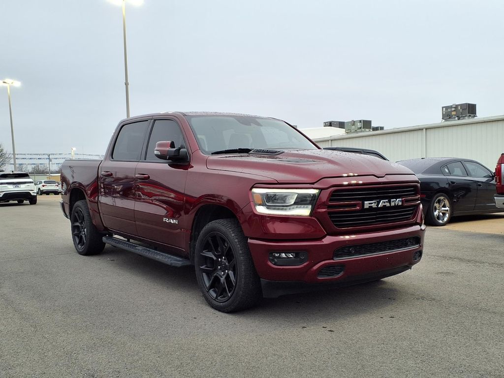This 2023 Ram 1500 Laramie in Delmonico Red Pearlcoat comes with the following features: HEMI 5.7L V8 Multi Displacement VVT eTorque 8-Speed Automatic 4WD Laramie Level B Equipment Group (12" Touchscreen Display, 2nd Row In Floor Storage Bins, 4G LTE Wi-Fi Hot Spot, Apple CarPlay, Auto High Beam Headlamp Control, Blind Spot & Cross Path Detection, Connected Travel & Traffic Services, Connectivity - US/Canada, Disassociated Touchscreen Display, Electric Shift-On-Demand Transfer Case, Foam Bottle Insert (Door Trim Panel), For Details, Visit DriveUconnect.com, For More Info, Call 800-643-2112, Front Door Accent Lighting, Front LED Fog Lamps, Global Telematics Box Module (TBM), Google Android Auto, GPS Antenna Input, GPS Navigation, harman/kardon 19 Speaker Premium Sound, HD Radio, Integrated Center Stack Radio, Integrated Voice Command w/Bluetooth, LED Reflector Headlamps, Radio: Uconnect 5 Nav w/12.0" Display, Rain Sensitive Windshield Wipers, Rear Door Accent Lighting, Rear Power Sliding Window, Rear Underseat Compartment Storage, Rear Window Defroster, Remote Tailgate Release, SiriusXM Radio Service, SiriusXM w/360L, and USB Host Flip), Quick Order Package 27H Laramie, Sport Appearance Package (Black Interior Accents, Body Color Exterior Mirrors, Body Color Front Bumper, Body Color Premium Power Mirrors, Body Color Rear Bumper w/Step Pads, Grille Surround 3 Body Color Tex 2 Black, RAM Grille Badge - Chrome, Sport Decal, Sport Performance Hood, and Wheels: 20" x 9" Premium Painted w/Inserts), #1 Seat Foam Cushion, 10 Speakers, 3 Rear Seat Head Restraints, 3.21 Rear Axle Ratio, 4 Way Front Headrests, 4-Wheel Disc Brakes, 48V Belt Starter Generator, ABS brakes, Adjustable pedals, Air Conditioning, Alloy wheels, AM/FM radio: SiriusXM with 360L, Anti-Spin Differential Rear Axle, Apple CarPlay/Android Auto, Audio memory, Auto-dimming door mirrors, Auto-Dimming Exterior Driver Mirror, Auto-dimming Rear-View mirror, Automatic temperature control, Brake assist, Bumpers: chrome, Chrome Exterior Mirrors, Class IV Receiver Hitch, Compass, Convex Wide-Angle Exterior Mirror Insert, Delay-off headlights, Driver door bin, Driver Seat Memory, Driver vanity mirror, Dual front impact airbags, Dual front side impact airbags, Electronic Stability Control, Exterior Mirrors Courtesy Lamps, Exterior Mirrors w/Heating Element, Exterior Mirrors w/Memory, Exterior Mirrors w/Supplemental Signals, Front anti-roll bar, Front Center Armrest w/Storage, Front dual zone A/C, Front fog lights, Front reading lights, Front Seat Back Map Pockets, Front wheel independent suspension, Fully automatic headlights, Garage door transmitter, Heated door mirrors, Heated Front Seats, Heated front seats, Heated Steering Wheel, Heated steering wheel, Illuminated entry, Leather steering wheel, Leather Trim 40/20/40 Bench Seat, Low tire pressure warning, Manufacturer's Statement of Origin, Memory seat, MOPAR Front & Rear Rubber Floor Mats, Navigation System, Occupant sensing airbag, Outside temperature display, Overhead airbag, Overhead console, Panic alarm, ParkSense Front/Rear Park Assist w/Stop (DISC), ParkView Rear Back-Up Camera, Passenger door bin, Passenger vanity mirror, Pedal memory, Power 2-Way Driver Lumbar Adjust, Power 2-Way Passenger Lumbar Adjust, Power 8-Way Driver & Passenger Seats, Power door mirrors, Power driver seat, Power passenger seat, Power steering, Power windows, Power-Folding Mirrors, Radio data system, Radio: Uconnect 5 Nav w/8.4" Display, Rear 60/40 Folding Seat, Rear anti-roll bar, Rear seat center armrest, Rear step bumper, Rear Wheelhouse Liners, Remote keyless entry, Security system, Speed control, Split folding rear seat, Steering wheel mounted audio controls, Tachometer, Telescoping steering wheel, Tilt steering wheel, Traction control, Trailer Brake Control, Trip computer, Turn signal indicator mirrors, Variably intermittent wipers, Ventilated Front Seats, Ventilated front seats, Voltmeter, Wheels: 18" x 8" Aluminum Base Painted, and Wheels: