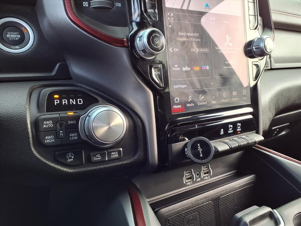 This 2025 Ram 1500 Rebel in Billet Silver Metallic Clearcoat comes with the following features: 3.0L I6 8-Speed Automatic 4WD Quick Order Package 21W Rebel, Rebel Level 1 Equipment Group (Auto Power-Folding Mirrors, Auto-Dimming Exterior Driver Mirror, Black Premium Power Mirrors, Convex Wide-Angle Exterior Mirror Insert, Exterior Mirrors Courtesy Lamps, Exterior Mirrors w/Heating Element, Exterior Mirrors w/Supplemental Signals, Power Adjustable Pedals, Rear Window Defroster, Remote Tailgate Release, and Wireless Charging Pad), 10 Speakers, 3.92 Rear Axle Ratio, 4 Way Front Headrests, 4-Wheel Disc Brakes, 4G LTE Wi-Fi Hot Spot, ABS brakes, Air Conditioning, Alloy wheels, AM/FM radio: SiriusXM with 360L, Apple CarPlay, Apple CarPlay/Android Auto, Auto High-beam Headlights, Auto-dimming Rear-View mirror, Automatic temperature control, Brake assist, Bucket Seats, Cloth/Vinyl Bucket Seats, Compass, Connected Travel & Traffic Services, Connectivity - US/Canada, Delay-off headlights, Driver door bin, Driver vanity mirror, Dual front impact airbags, Dual front side impact airbags, Electronic Stability Control, Front anti-roll bar, Front Bucket Seats, Front Center Armrest w/Storage, Front dual zone A/C, Front fog lights, Front License Plate Bracket, Front reading lights, Front Seat Back Map Pockets, Front wheel independent suspension, Full Length Upgraded Floor Console, Fully automatic headlights, Garage door transmitter, Google Android Auto, GPS Antenna Input, GPS Navigation, Heated door mirrors, Heated front seats, Heated steering wheel, Illuminated entry, Integrated Voice Command w/Bluetooth, Leather steering wheel, Low tire pressure warning, Manual Folding Exterior Mirrors, Manufacturer's Statement of Origin, Navigation System, Occupant sensing airbag, Outside temperature display, Overhead airbag, Overhead console, Panic alarm, ParkView Rear Back-Up Camera, Passenger door bin, Passenger vanity mirror, Power Adjust 8-Way Driver Seat, Power door mirrors, Power driver seat, Power steering, Power windows, Radio data system, Radio: Uconnect 5 Nav w/12.0" Display, Rear 60/40 Folding Seat, Rear anti-roll bar, Rear seat center armrest, Rear step bumper, Remote keyless entry, SiriusXM w/360L, Speed control, Split folding rear seat, Steering wheel mounted audio controls, Tachometer, Telescoping steering wheel, Tilt steering wheel, Traction control, Trip computer, USB Host Flip, Variably intermittent wipers, Voltmeter, and Wheels: 18" x 8.0" Painted Mid-Gloss Black. Billet Silver Metallic Clearcoat 2025 Ram 1500 Rebel 4WD 8-Speed Automatic 3.0L I6