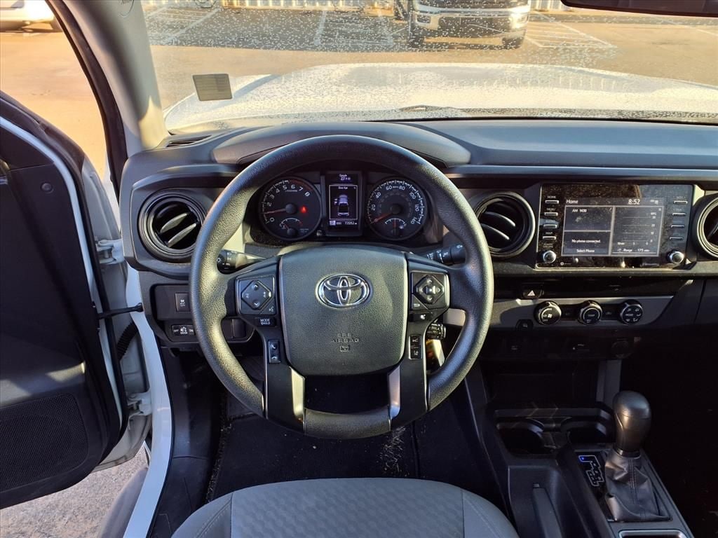This 2020 Toyota Tacoma in comes with the following features: 2.7L SMPI DOHC 6-Speed Automatic RWD 6 Speakers, ABS brakes, Air Conditioning, AM/FM radio: SiriusXM, Anti-whiplash front head restraints, Apple CarPlay/Android Auto, Auto High-beam Headlights, Axle Ratio: 4.30, Brake assist, Bumpers: body-color, Driver door bin, Dual front impact airbags, Dual front side impact airbags, Electronic Stability Control, Emergency communication system: Safety Connect with 1-year trial, Exterior Parking Camera Rear, Front anti-roll bar, Front Bucket Seats, Front Center Armrest, Front reading lights, Front wheel independent suspension, Illuminated entry, Knee airbag, Low tire pressure warning, Occupant sensing airbag, Outside temperature display, Overhead airbag, Overhead console, Passenger door bin, Power door mirrors, Power steering, Power windows, Rear step bumper, Speed control, Speed-sensing steering, Split folding rear seat, Steering wheel mounted audio controls, Tachometer, Telescoping steering wheel, Tilt steering wheel, Traction control, Variably intermittent wipers, and Wheels: 16" x 7J Style Steel Disc. 2020 Toyota Tacoma RWD 6-Speed Automatic 2.7L SMPI DOHC