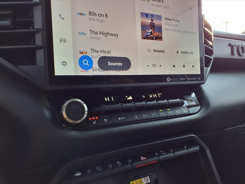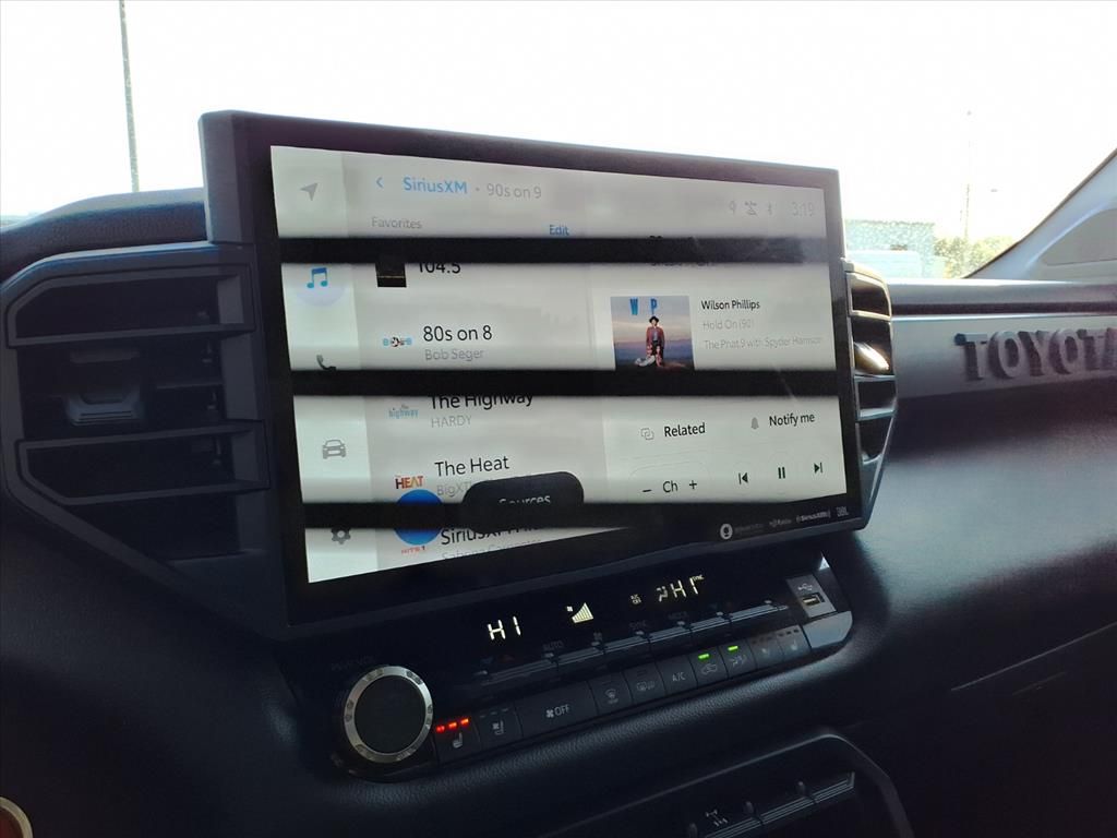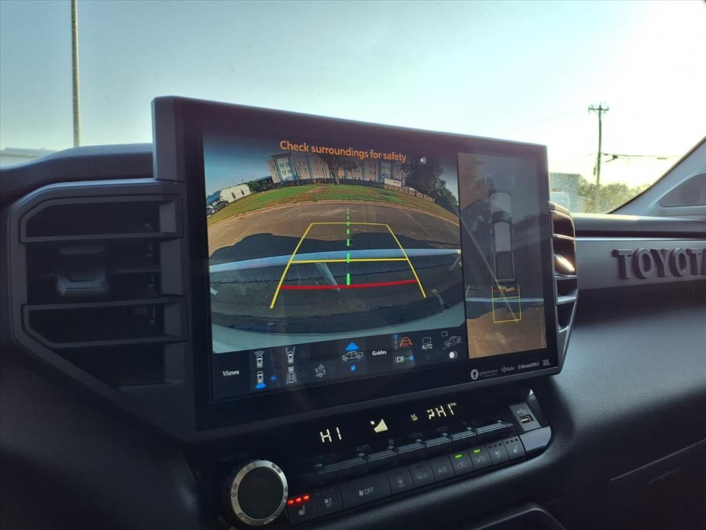 This 2023 Toyota Tundra Hybrid TRD Pro in White comes with the following features: 3.4L V6 10-Speed Automatic 4WD 3.4L V6 Towing Technology Package, 3.4L V6, 12 Speakers, 3.31 Axle Ratio, 4-Wheel Disc Brakes, 400W/120V AC Rear Seat & Bed Power Supply, ABS brakes, Air Conditioning, Alloy wheels, AM/FM radio: SiriusXM, Apple CarPlay/Android Auto, Auto High-beam Headlights, Auto-dimming door mirrors, Auto-dimming Rear-View mirror, Automatic temperature control, Black Dual Exhaust Tips w/Debossed TRD Pro Logo, Brake assist, Bumpers: body-color, Delay-off headlights, Driver door bin, Driver vanity mirror, Dual front impact airbags, Dual front side impact airbags, Electronic Stability Control, Emergency communication system: Safety Connect (10-year trial), Front & Rear Mud Guards, Front anti-roll bar, Front Bucket Seats, Front Center Armrest, Front dual zone A/C, Front fog lights, Front reading lights, Front wheel independent suspension, Fully automatic headlights, Garage door transmitter: HomeLink, Heated & Ventilated Front Bucket Seats, Heated Color-Keyed Outside Mirrors, Heated door mirrors, Heated front seats, Heated steering wheel, Illuminated entry, Knee airbag, Leather Shift Knob, LED Lightbar w/Fog & Marker Lights, Low tire pressure warning, Memory seat, Multi-Terrain Back Monitor, Navigation System, Occupant sensing airbag, Outside temperature display, Overhead airbag, Overhead console, Panic alarm, Passenger door bin, Passenger vanity mirror, Power door mirrors, Power driver seat, Power moonroof, Power Panoramic Roof, Power passenger seat, Power steering, Power windows, Qi-Compatible Wireless Smartphone Charger, Radio data system, Radio: Premium Audio w/JBL, Rear reading lights, Rear seat center armrest, Rear step bumper, Rear window defroster, Remote keyless entry, Security system, Smoked-Finish Premium LED Headlights & DRL, SofTex Seat Trim, Speed control, Speed-sensing steering, Split folding rear seat, Sport steering wheel, Steering wheel mounted audio controls, Tachometer, Telescoping steering wheel, Tilt steering wheel, Traction control, TRD Pro Heated Leather-Trimmed Steering Wheel, Trip computer, Turn signal indicator mirrors, Variably intermittent wipers, Ventilated front seats, Voltmeter, and Wheels: 18" x 8" Black BBS Forged Aluminum. White 2023 Toyota Tundra Hybrid TRD Pro 4WD 10-Speed Automatic 3.4L V6 3.4L V6.