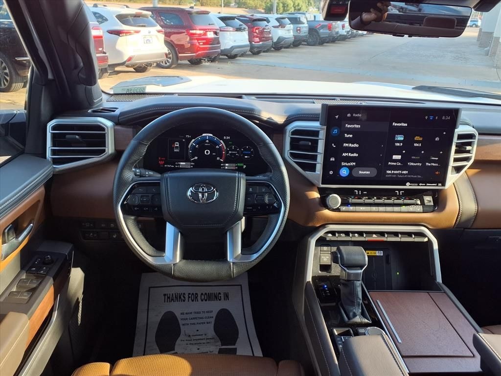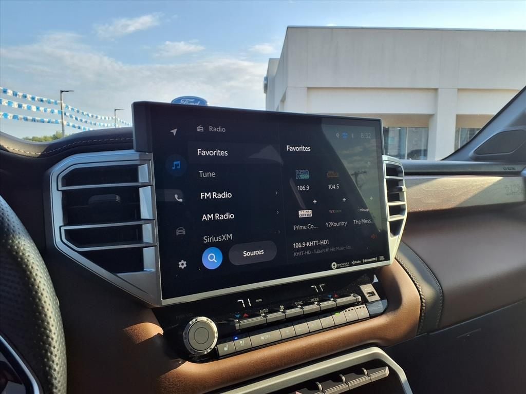 This 2024 Toyota Tundra Hybrid 1794 Edition in White comes with the following features: 3.4L V6 10-Speed Automatic 4WD 3.4L V6 3.4L V6, 12 Speakers, 3.31 Axle Ratio, 4-Wheel Disc Brakes, ABS brakes, Air Conditioning, Alloy wheels, AM/FM radio: SiriusXM, Apple CarPlay/Android Auto, Auto High-beam Headlights, Auto-dimming door mirrors, Auto-dimming Rear-View mirror, Automatic temperature control, Brake assist, Bumpers: body-color, Delay-off headlights, Driver door bin, Driver vanity mirror, Dual front impact airbags, Dual front side impact airbags, Electronic Stability Control, Emergency communication system: Safety Connect (10-year trial), Exterior Parking Camera Rear, Front anti-roll bar, Front Bucket Seats, Front Center Armrest, Front dual zone A/C, Front fog lights, Front reading lights, Front wheel independent suspension, Fully automatic headlights, Garage door transmitter: HomeLink, Heated & Ventilated Front Bucket Seats, Heated door mirrors, Heated front seats, Heated rear seats, Heated steering wheel, Illuminated entry, Knee airbag, Leather Seat Trim, Leather Shift Knob, Low tire pressure warning, Memory seat, Navigation System, Occupant sensing airbag, Outside temperature display, Overhead airbag, Overhead console, Panic alarm, Passenger door bin, Passenger vanity mirror, Power door mirrors, Power driver seat, Power moonroof, Power passenger seat, Power steering, Power windows, Radio data system, Radio: Premium Audio w/JBL, Rain sensing wipers, Rear reading lights, Rear seat center armrest, Rear step bumper, Rear window defroster, Remote keyless entry, Security system, Speed control, Speed-sensing steering, Split folding rear seat, Steering wheel memory, Steering wheel mounted audio controls, Tachometer, Telescoping steering wheel, Tilt steering wheel, Traction control, Trip computer, Turn signal indicator mirrors, Variably intermittent wipers, Ventilated front seats, Ventilated rear seats, Voltmeter, and Wheels: 20" x 8" Machined-Finish Alloy. White 2024 Toyota Tundra Hybrid 1794 Edition 4WD 10-Speed Automatic 3.4L V6 3.4L V6.
